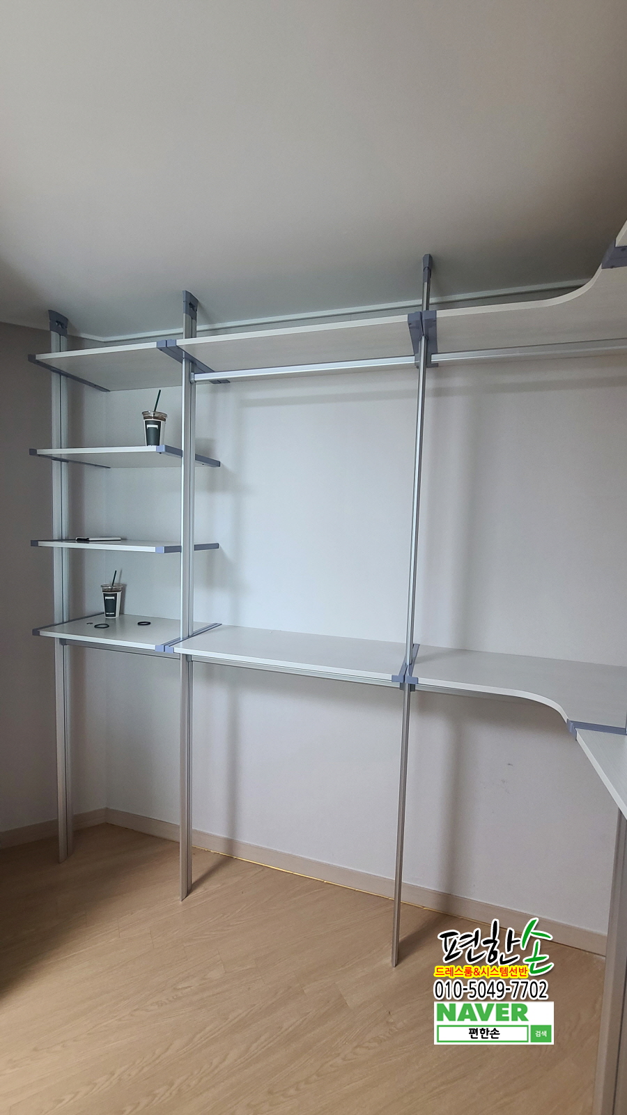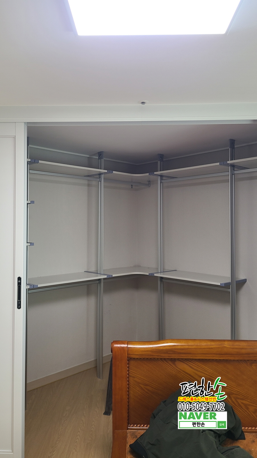 안방 구조에 맞춰 ㄱ자 시스템행거를 설치하고